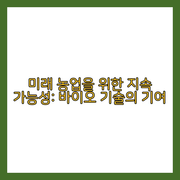 결국, 친환경 농업을 위한 바이오 기술의 발전은 단순한 변화가 아니라 지속 가능한 미래를 위한 내일의 농업을 이끌어가는 중요한 요소가 되고 있습니다. 🌍 앞으로 어떤 혁신이 펼쳐질지 기대되네요!