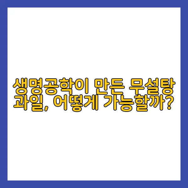 생명공학은 생물학과 기술이 만나 생명체를 조작하고 활용하는 분야인데요, 이를 통해 우리는 열대과일처럼 단맛이 가득한 것들을 설탕 없이도 만들어낼 수 있게 되었습니다! 🌱 기본적으로 생명공학의 원리는 유전자를 연구하고 조작하는 데 그 뿌리를 두고 있는데요, 유전자 편집 기술인 CRISPR-Cas9 같은 방법을 활용하여 특정 유전자의 기능을 수정하거나 새로운 유전자를 삽입하는 방식입니다. 이렇게 하면 과일의 당도나 영양 성분을 조절할 수 있죠! 🤓