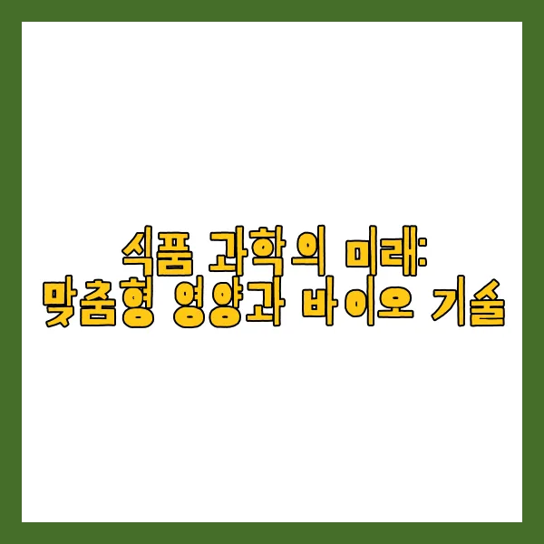 우리가 이야기한 맞춤형 영양과 바이오 기술의 발전은 단순한 관심사가 아닌, 앞으로의 식품 과학과 건강 관리에서 필수적인 부분이 될 것입니다. 이제는 개개인의 필요에 맞춰 음식이 제공되는 시대가 다가오고 있어요. 이러한 변화는 우리의 생활 방식을 더 건강하게 만들어 줄 수 있는 기회가 될 것입니다. 지속 가능한 미래를 위해 우리가 어떤 식품을 선택할지는 우리의 손에 달려 있습니다. 앞으로의 식품 과학은 무엇보다도 우리에게 더 나은 삶을 제안할 것이니, 지속적인 관심과 참여가 필요하겠죠. 함께 기대하고 준비해보아요!