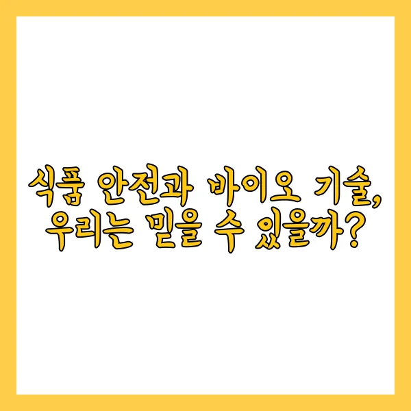 식품 안전과 바이오 기술의 관계는 점점 더 긴밀해지고 있습니다. 우리가 먹는 음식이 안전하다는 확신이 필요한 시대, 소비자 신뢰는 무엇보다 중요하죠. 결국, 누구나 안전하게 식품을 소비할 수 있는 환경을 만들어가기 위해서는 규제와 정책도 지속적으로 발전해야 합니다. 그래서 우리의 선택이 중요한데요, 생산자와 소비자가 함께 참여하며 건강한 식문화가 자리 잡기를 바라봅니다. 안전한 식품, 신뢰받는 바이오 기술, 이 두 가지가 조화를 이루는 미래를 기대해봅니다. 우리 모두의 소중한 건강을 지키기 위해서 말입니다.