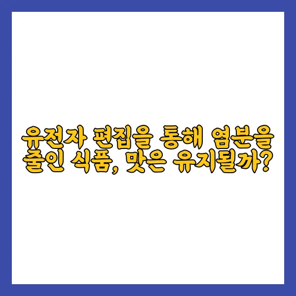 염분이 특정 식품에 미치는 부정적인 효과를 줄이는 것은 정말 중요한 문제입니다. 우리 몸에 과도한 나트륨 섭취는 고혈압, 심장병과 같은 여러 질병을 유발할 수 있거든요. 따라서 유전자 편집 기술을 활용하여 염분을 낮추고도 맛을 유지하는 식품을 개발하는 것은 수많은 사람들에게 이로운 일이 될 것입니다. 🍽️